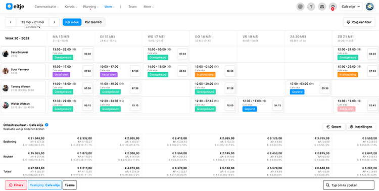 - Je hebt in Eitje direct inzicht in je financiële gegevens en gemaakte omzet.