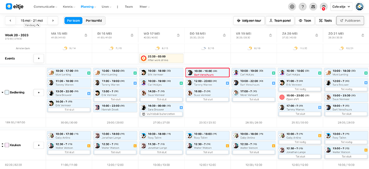 Wij zijn Eitje, de overzichtelijkste rooster- en urentool van Nederland. De naam Eitje hebben we omdat we heilig geloven in simpele software. Zes jaar geleden vonden we digitaal roosteren maar ingewikkeld en zo was het idee geboren. Nu maken meer dan duizend bedrijven dagelijks gebruik van onze oplossing om het managen van hun zaak echt een eitje te maken 🍳. We weten hoe belangrijk het is om meteen en goed geholpen te worden. Daarom kan je in Eitje live met ons chatten, reageren wij binnen een minuut en zitten er mensen achter die écht weten waar ze het over hebben.